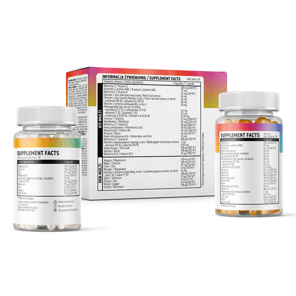 - A C-vitaminjótékony hatással van az idegrendszerre és az immunrendszerre. A magas biológiai hozzáférhetőségű szerves formákból származó ásványi anyagok, mint például: vas, mangán és réz bisglicinát (kelát), króm és cink pikolinát, szelén (L-szelenometionin), magnézium, kalcium és kálium citrát formájában.